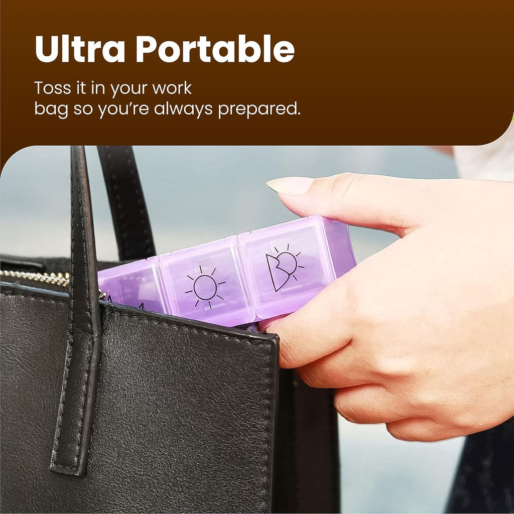 • Type: 7 Day Pill Organizer with 4 Compartments Per Day