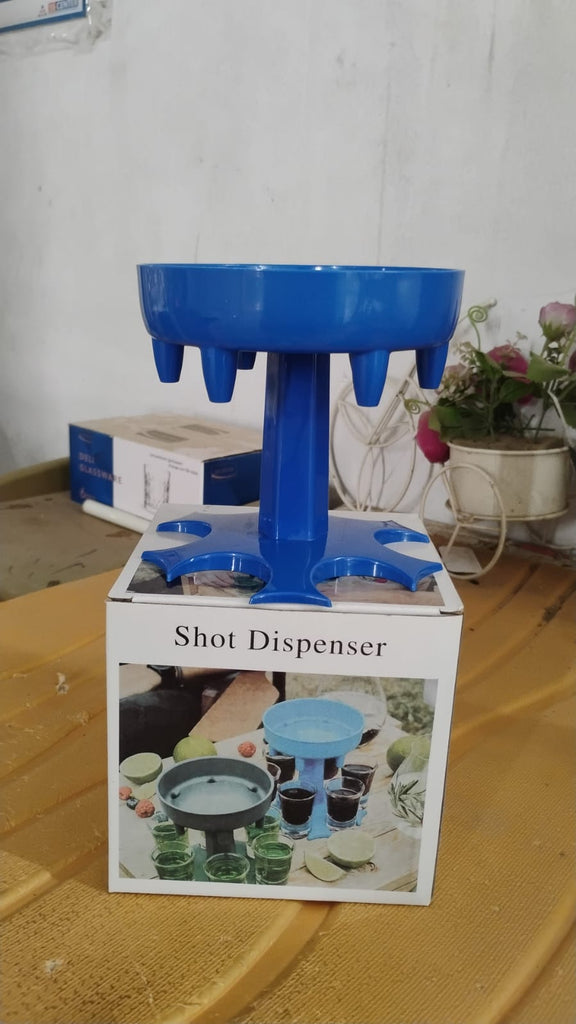 6-Way Plastic Shot Glass Dispenser with Holder Stand – Even Liquid Pouring System for Parties, Bars, Home Events & Cocktail Stations (1 Pc)