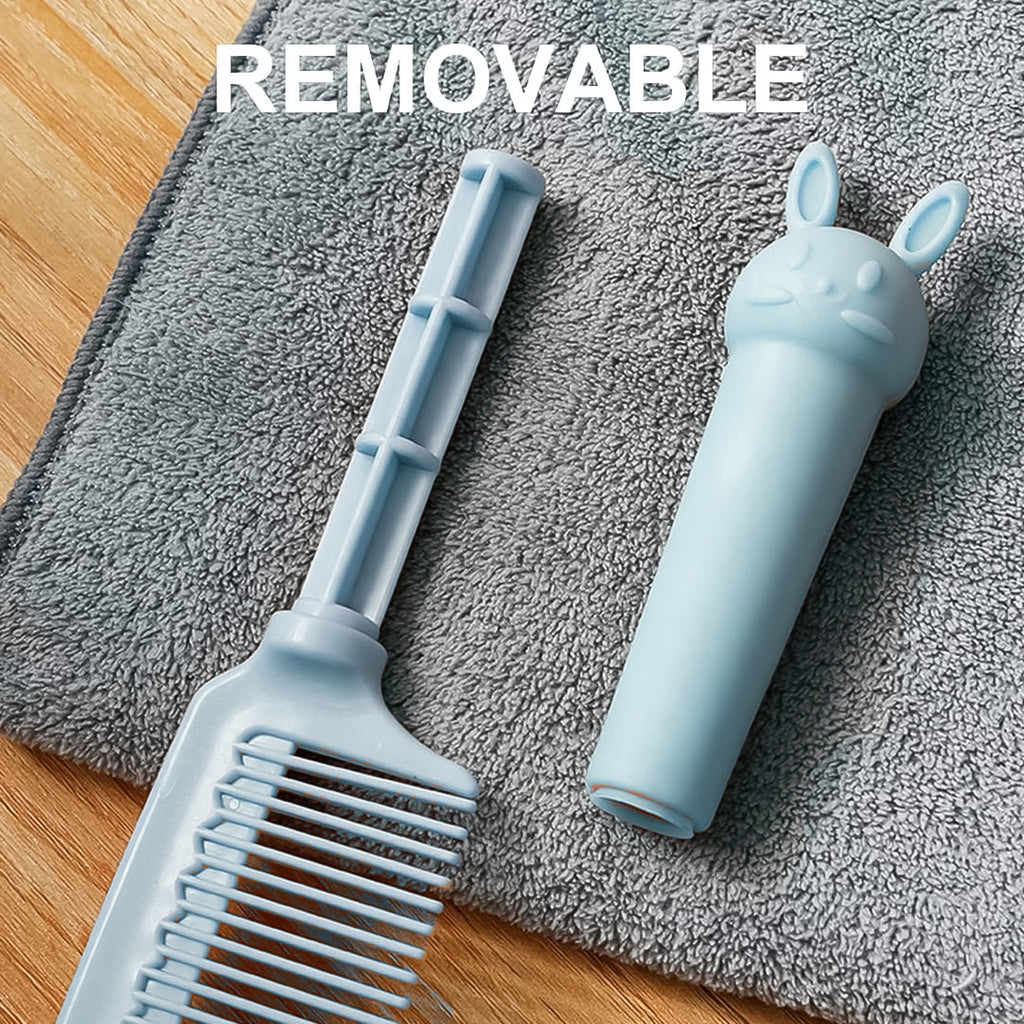 Make hair grooming a delightful experience with this charming comb, featuring a durable plastic body and teeth combined with an adorable, soft-touch silicone bunny-shaped handle. Designed for both kids and adults who appreciate a touch of cuteness, this comb ensures gentle detangling without snagging or pulling. The evenly spaced plastic teeth glide smoothly through various hair types – wet or dry – leaving hair neat and manageable. The ergonomic silicone handle provides a comfortable and secure grip, making daily brushing easy and fun. Perfect for everyday use at home, school, or while traveling.