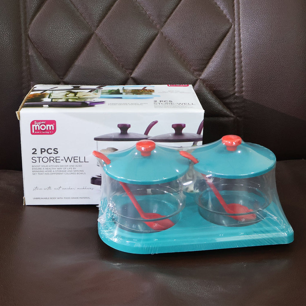 The 2 Pcs Storewell Multipurpose Container Set is a stylish and practical solution for keeping your spices, pickles, condiments, and dry fruits neatly organized. Designed with a durable unbreakable body and food-grade material, this set ensures safety, hygiene, and convenience. Each container comes with its own spoon and a fitted lid, making it ideal for daily kitchen use while keeping ingredients fresh and accessible. The sleek tray design makes it easy to carry and enhances your kitchen’s look.