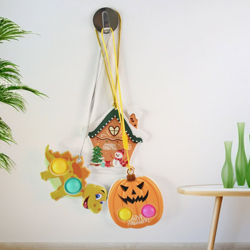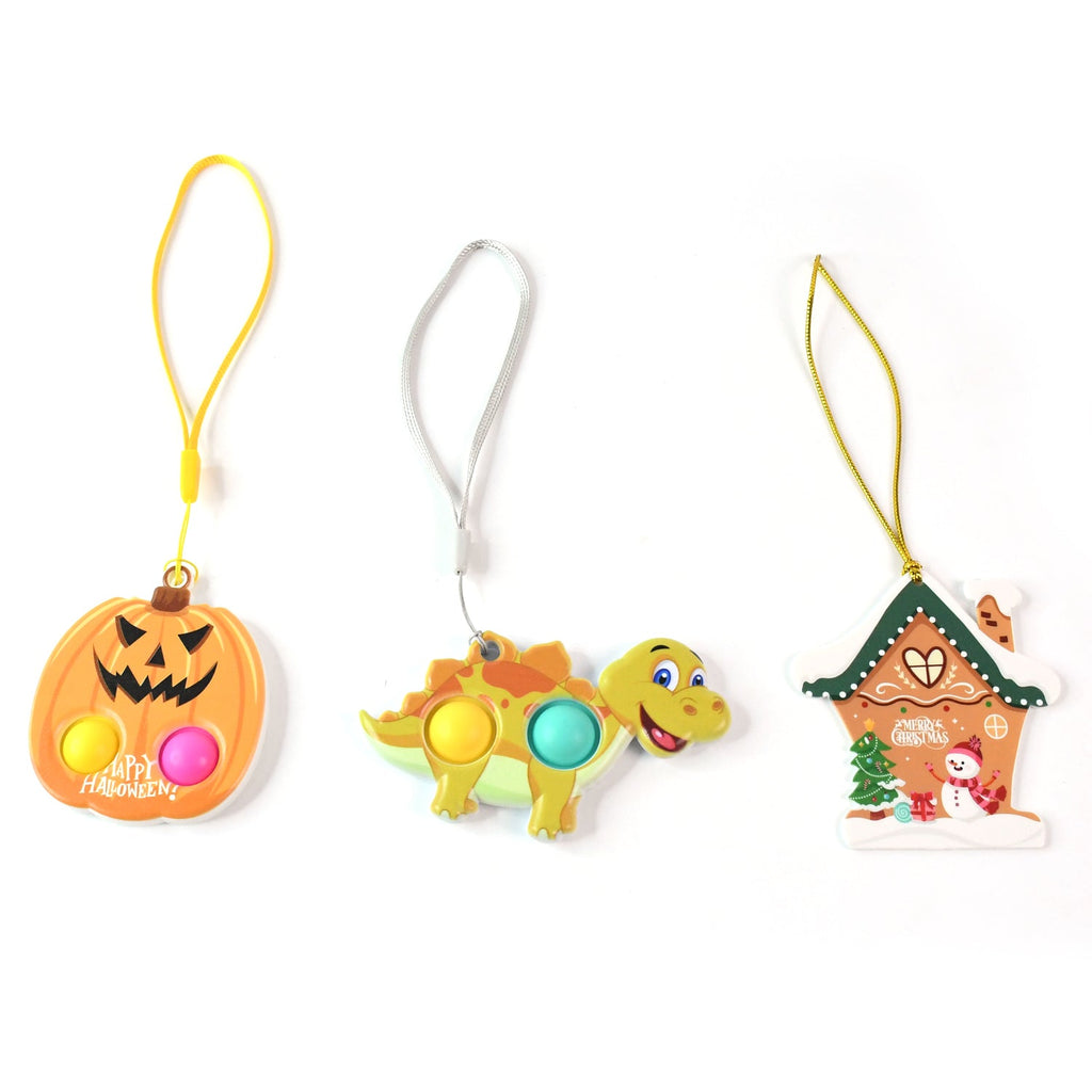 Silicone Cartoon Push Pop Bubble Sensory Fidget Keychain Toy Combo – Halloween Pumpkin, Christmas House & Dinosaur Designs – Stress Relief Pop-It Toy with Strap for Kids & Adults (Assorted, 1 Pc)