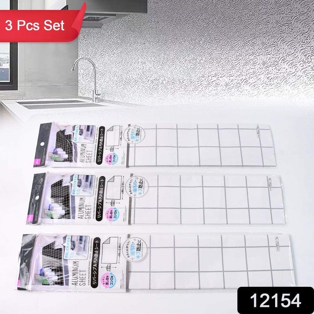 Aluminium Kitchen Wall Sheet, Back splash Wallpaper, Aluminium Without Adhesive Oil-Proof Wall Sheet Contact Paper for Shelf Liner, Drawer Liner, Cabinet Liner (3 Pc / 50x90 Cm)