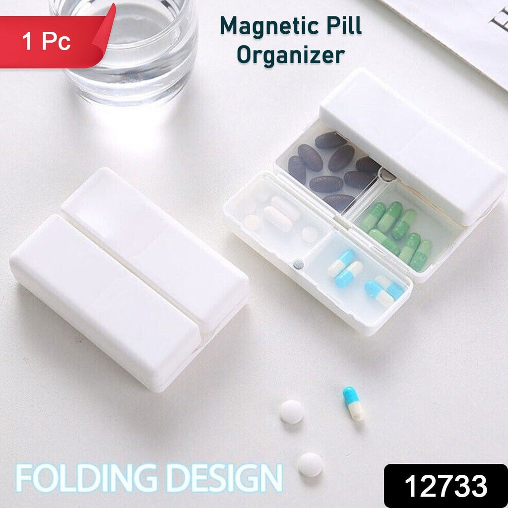 12733 Magnetic Pill Organizer, 7 Compartments Portable Pill Case Travel Pill Organizer, Folding Design Pill Box for Purse Pocket to Hold Vitamins, Cod Liver Oil, Supplements, Medicine Box (1 Pc)