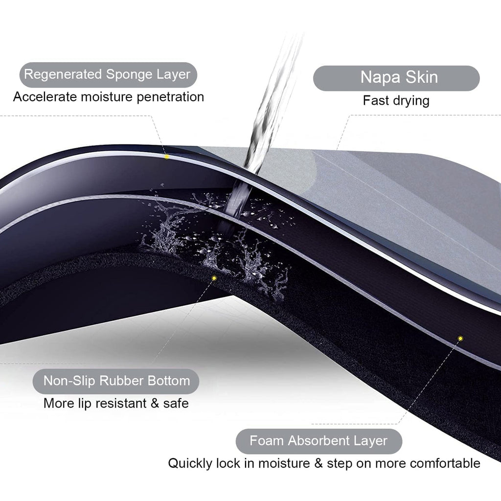 • STRONG NON-SLIP :- Our non-slip floor mats are made of rubber + tech velvet, which dries faster than ordinary floor mats. Non-slip rubber bottom firm grip for increased safety and stability. Super absorbent floor mat. Absorbent bath mats dry quickly.