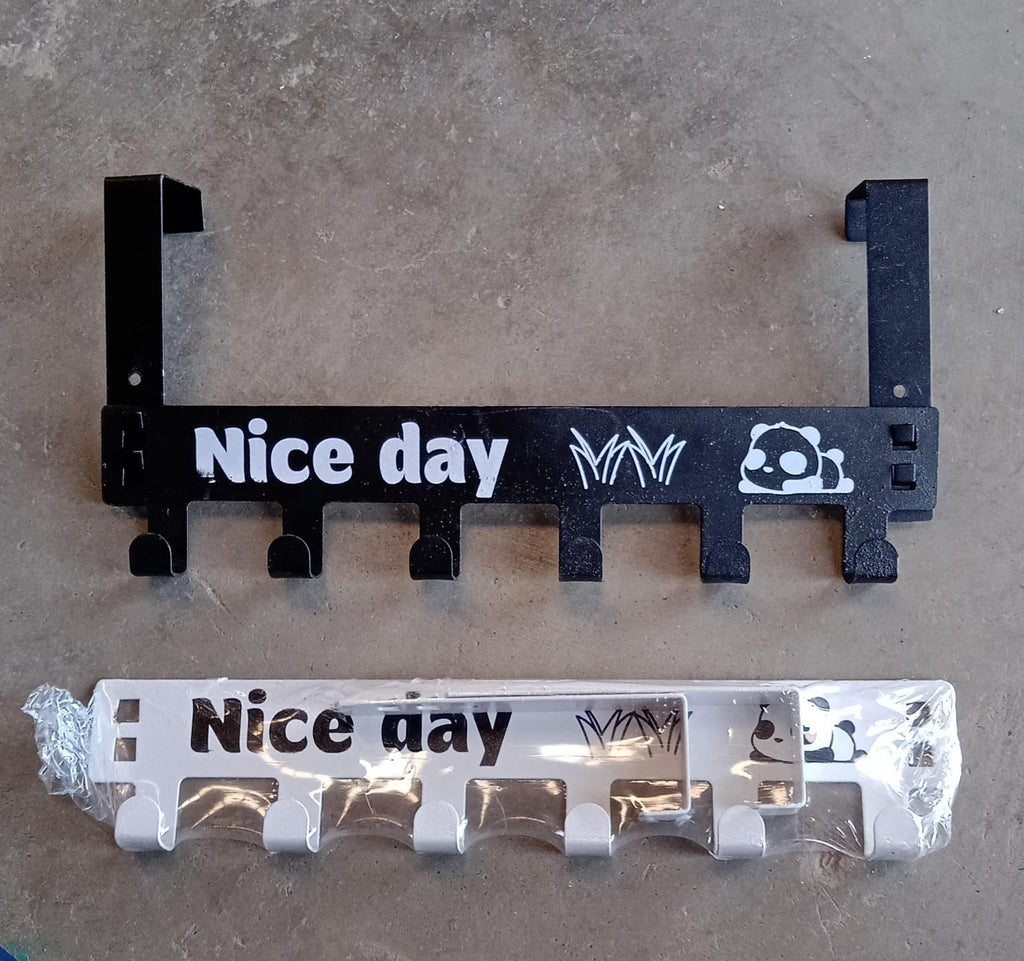 8536 Heavy-Duty Carbon Steel Cartoon Nice Day Over Door Hook Hanger Rack, Towel Hanger, Removable Door Hook, Coat, Scarf, Cloths Hanger (1 pc / 6 Hook)