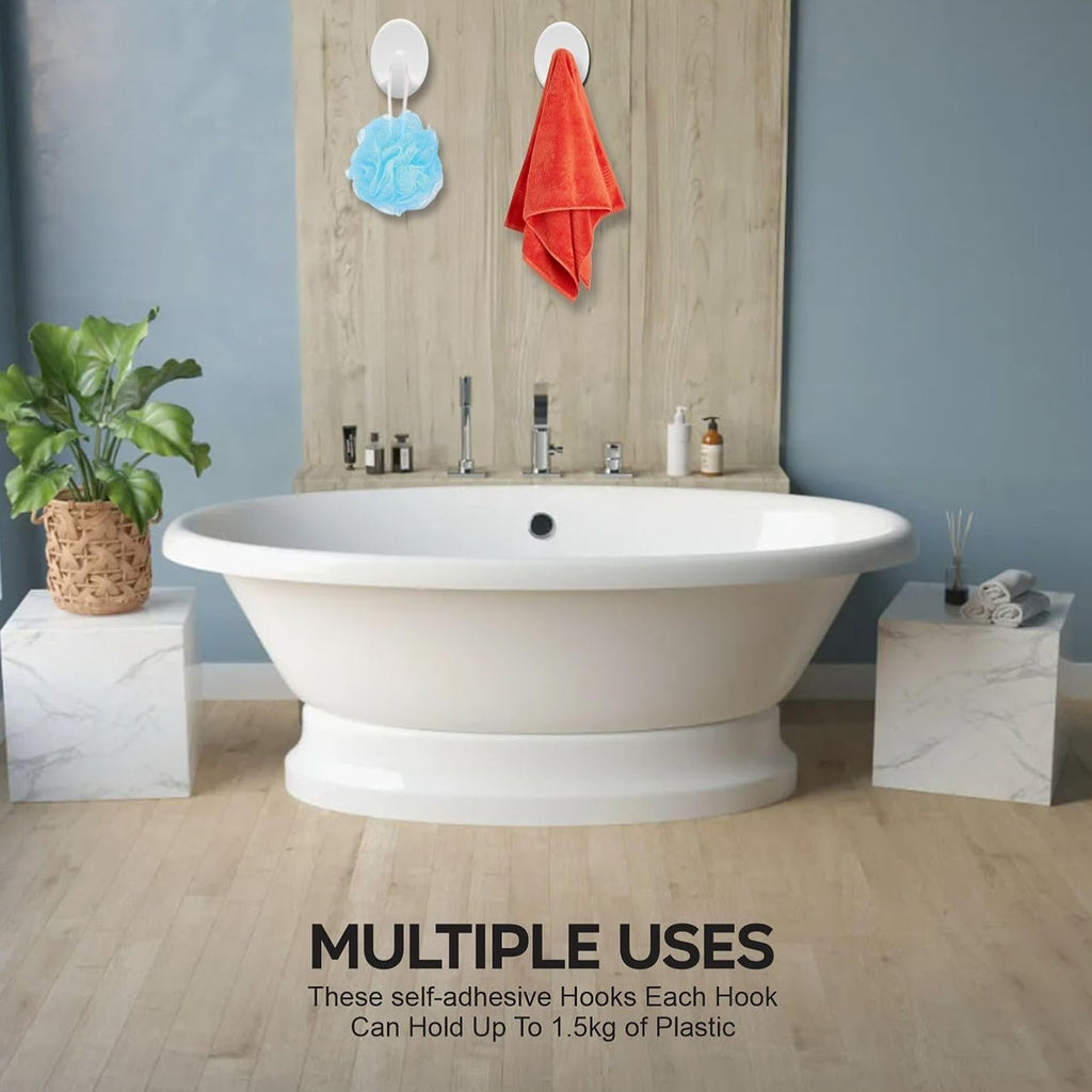 Multipurpose Oval Shaped Self Adhesive Hooks for Homes, Kitchens, Offices, Changing Rooms, and Other Places. Adhesive Wall-Mounting - Stick the Hook onto a Surface Like a Fridge, Kitchen Cabinets, Bathrooms or Wash-Basin Tiles, etc. Multipurpose Hooks can be used for Hanging Towels, Small Purses, Clothes, and many more Lightweight items. The Adhesive of these Hooks makes them Stick Firmly to the Surface. Each Hook can take up to 1Kg weight, which is sufficient for many daily-use items How to use: Tear off the adhesive and stick it to the wall or tile. Please make sure the hook adheres to the wall tight before putting the stuff above.