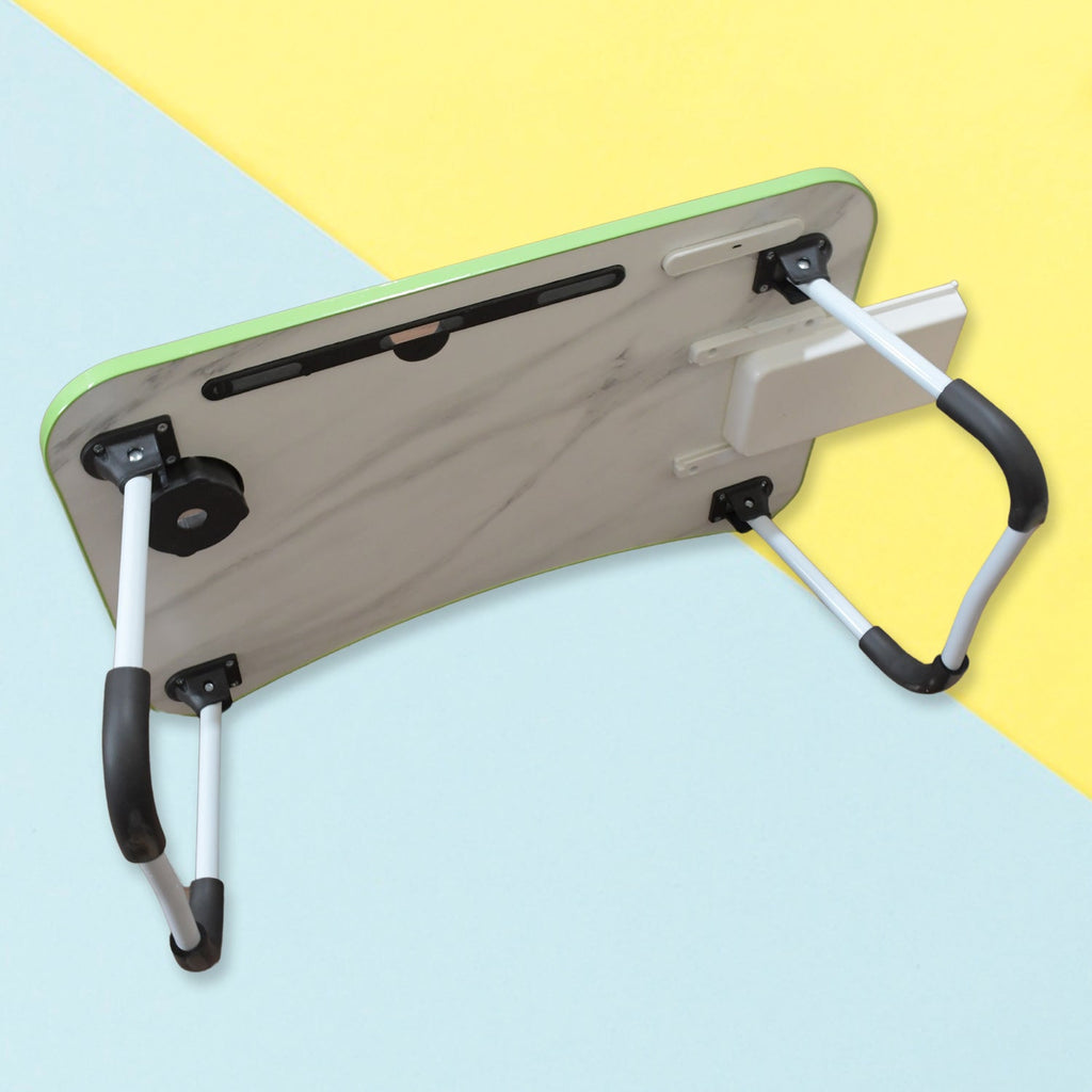 7892 MultiPurpose Study Table Foldable Portable Notebook Bed Lap Desk Tray Stand Reading Holder with Coffee Cup Slot, Drawer, Fan, USB Cable & Light for Breakfast, Reading & Movie Watching (1 Pc Mix Color)