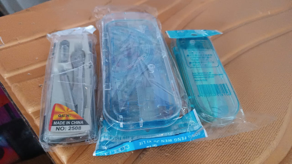 This 1 Pc Mix Design Geometry Compass Set offers a variety of stylish and functional compass kits perfect for school-going children and students. Each set includes essential mathematical instruments such as a compass, pencil, divider, and ruler, all housed in a compact and durable plastic box.