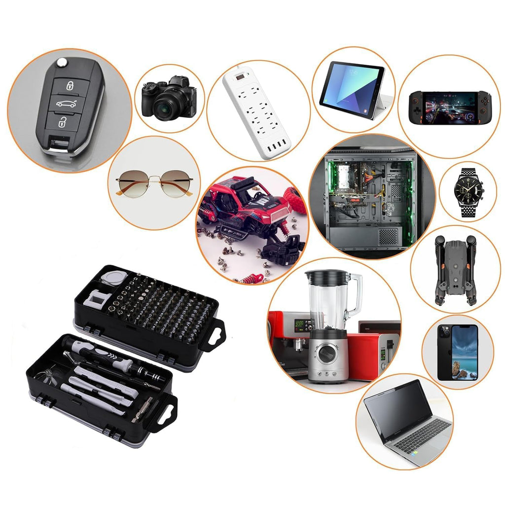 The 115-in-1 Precision Screwdriver Repair Tool Kit is your all-in-one solution for tackling delicate electronic repairs and DIY maintenance projects. Designed for professionals and hobbyists alike, this compact toolkit includes varied bits and essential tools for disassembling and repairing laptops, smartphones, tablets, game consoles, eyeglasses, watches, cameras, and more.